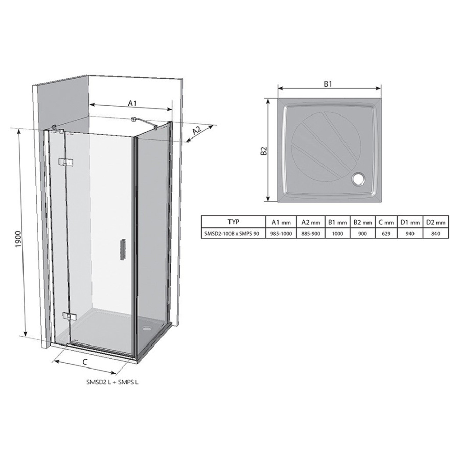 Душевой уголок Ravak Smartline SMSD2 100x90 R профиль хром, стекло прозрачное