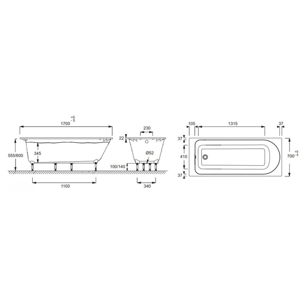 Ванна из искусственного камня отдельностоящая U-Solid NOA LIGHT 1700*80 матовая UMY